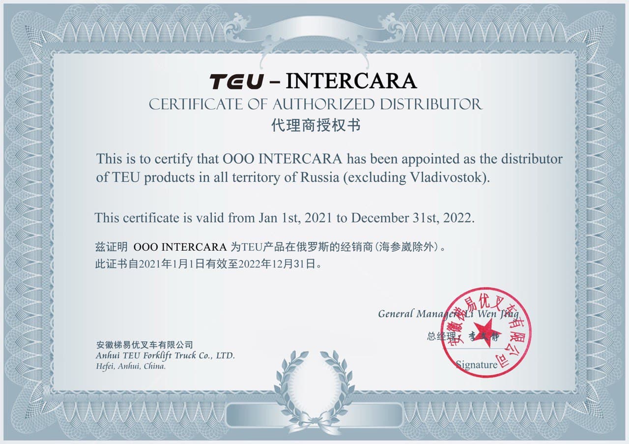 Сертификат авторизованного диллера XINCHAI